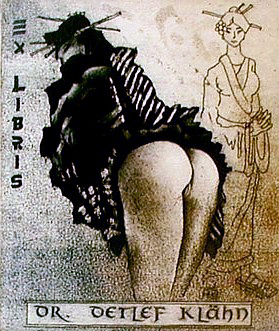Im Laufe der Jahre entstanden von Klös immer wieder Ex Libris, meist erotischer Manier, manchmal im Auftrag, oft für Freunde exemplarisch sind hier einige wenige abgebildet. Sollten Sie ein eigenes Buchzeichen wünschen, ist dies möglich. ausgeführt meist in der Technik der Radierung, Auflagenhöhe 30 - 50.