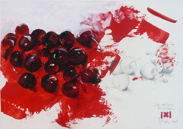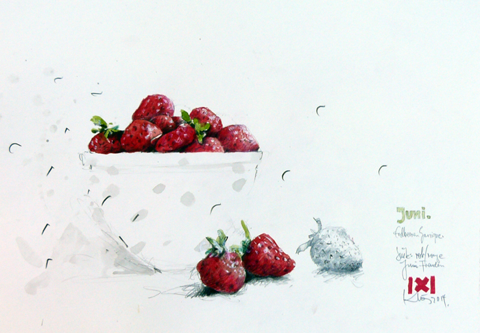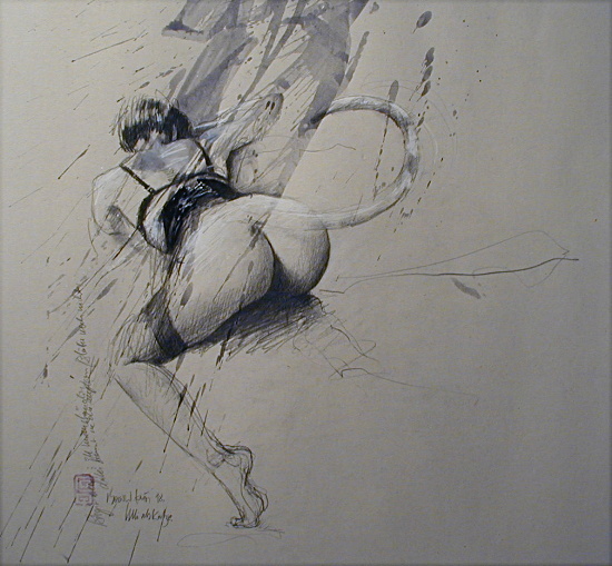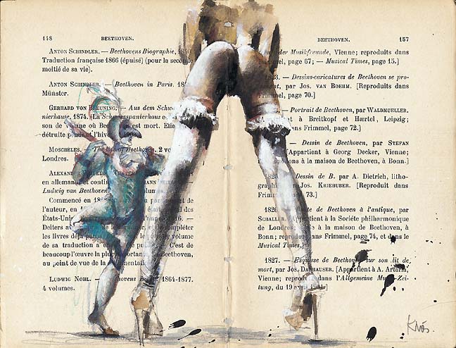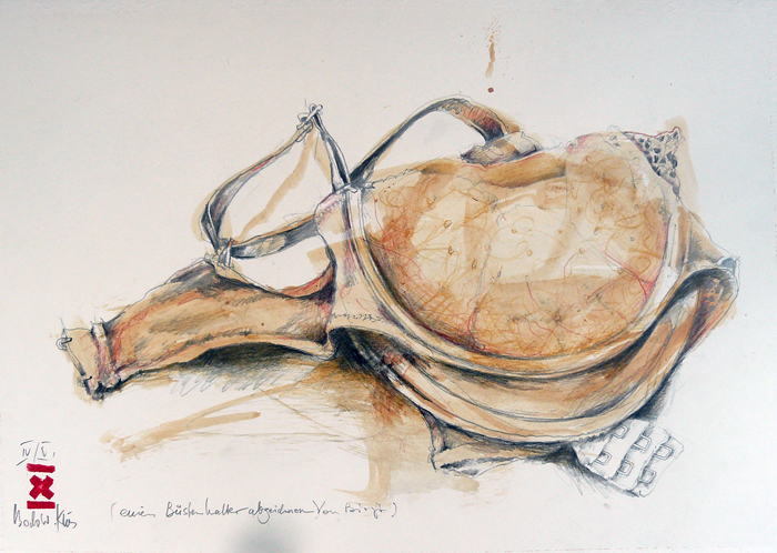 Mit seinen vor lebenspraller Erotik sirrenden Blättern hat sich Klös bereits seit Jahren einen Namen gemacht. Kein Wunder, denn die Anzüglichkeiten haben nichts gemeines an sich, sondern in ihnen steckt eine rotweinselige Heiterkeit, die das Dasein mit Phantasie verzaubert. Die unbändige Lust des Augenblicks tanzt gegen alle Bedenken tragende Bigotterie an und kreiert Blätter, die infernalisch zu lachen scheinen.