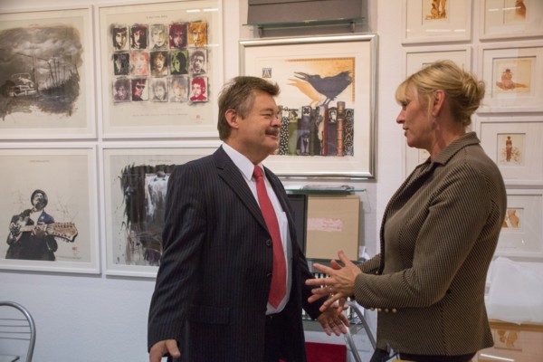 Messeeröffnung im Leipziger Gewandhaus am Vorabend Birgit Klös mit Marlies und Thomas Müth (Kunst & Druckkunst, Sonsbeck) |
